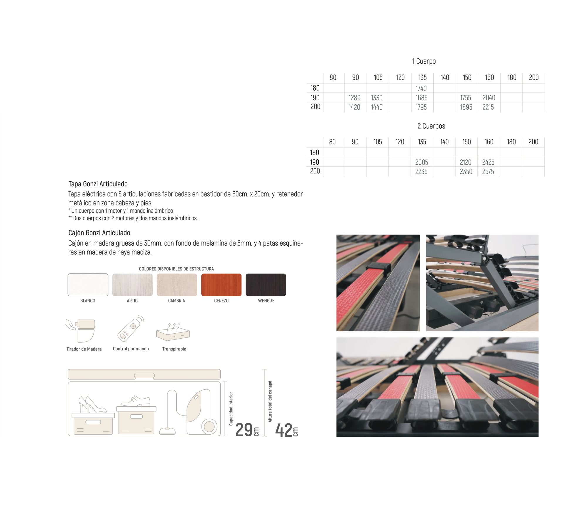 Gonzi Articulado | Canapé Articulado Inalámbrico | 5 Zonas de Articulación | 29 cm Capacidad Interior | Altura Total 42 cm