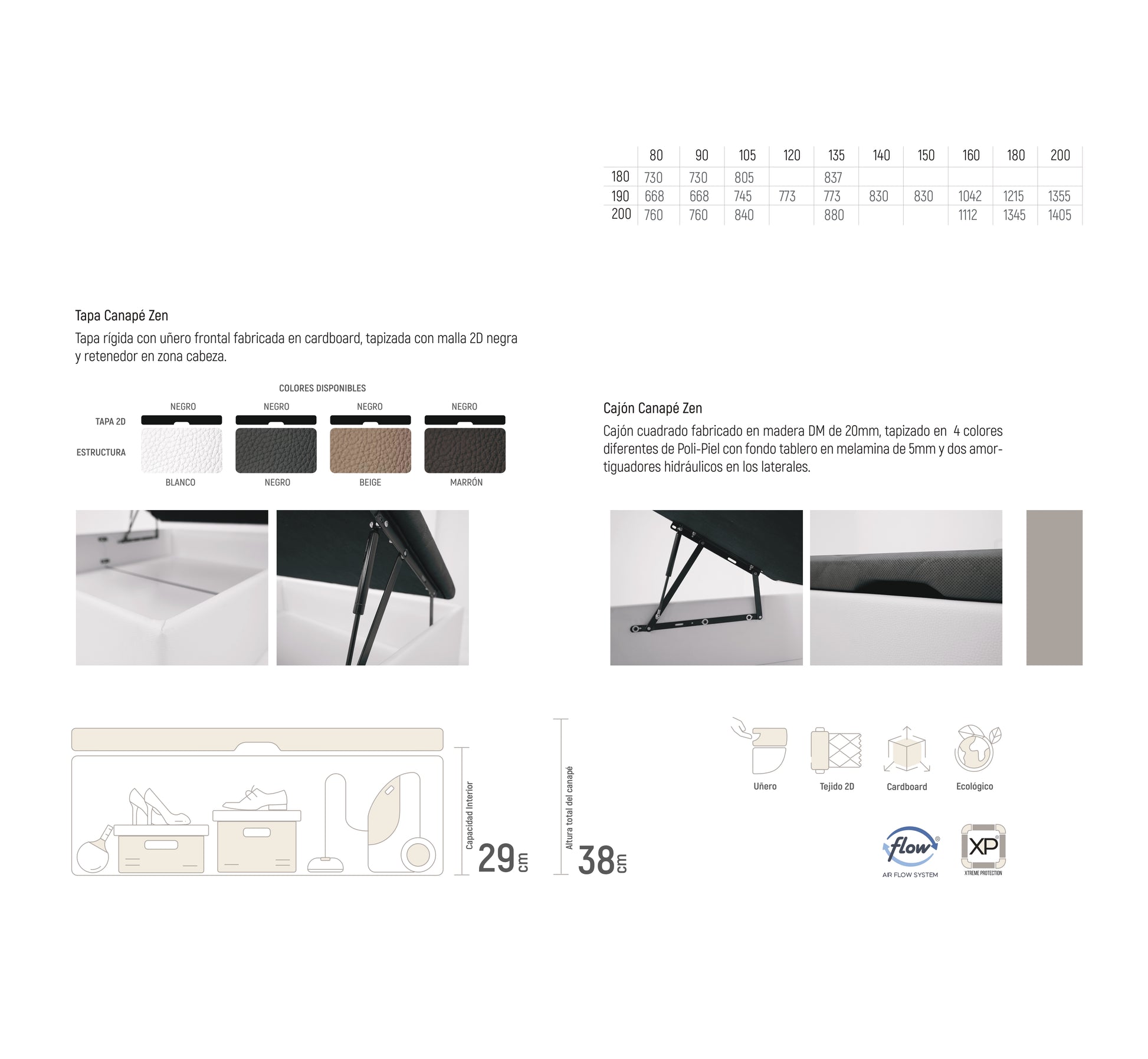 Anchuras de 80 a 200 cm y largos de 180, 190 y 200 cm.