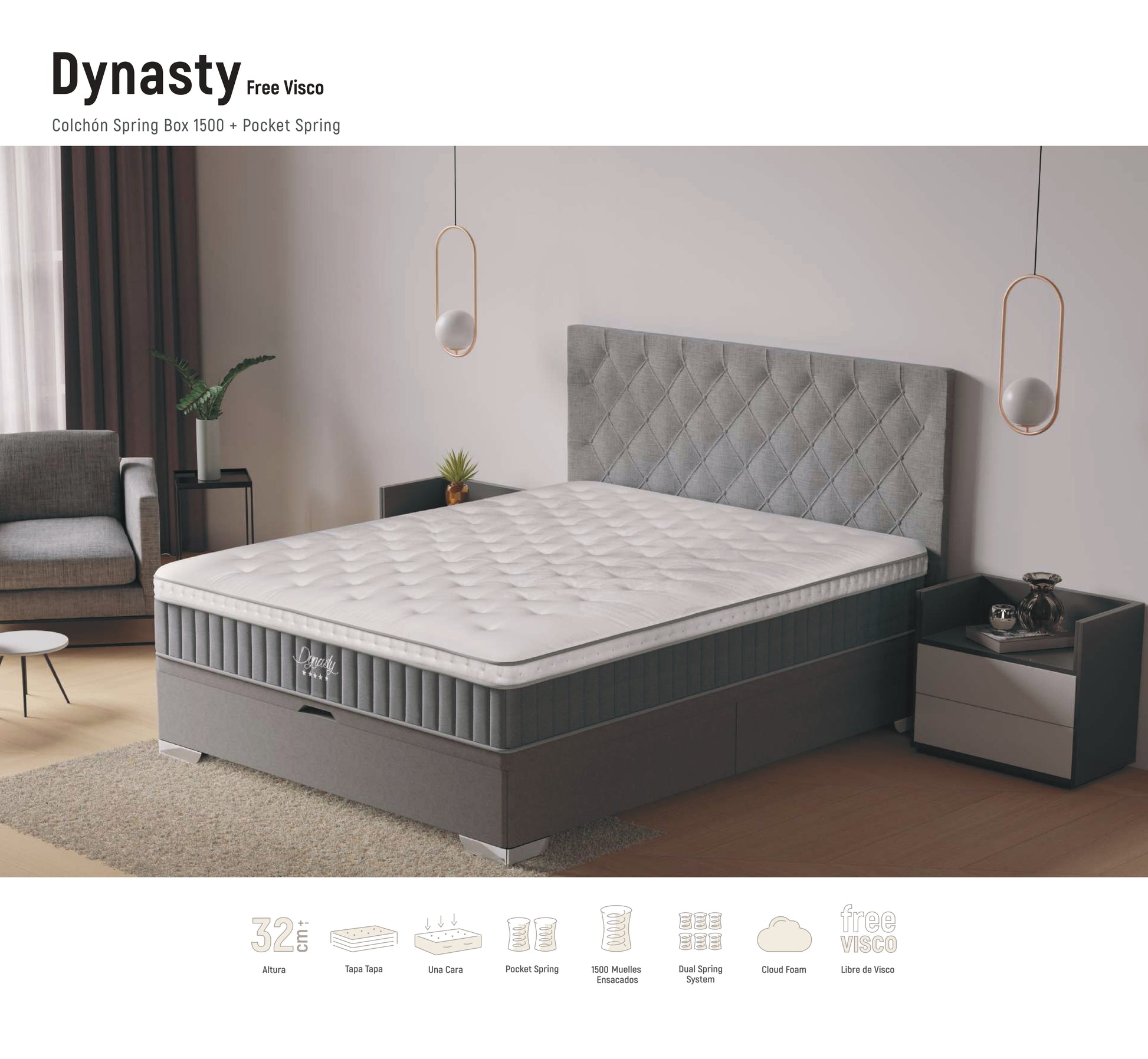 Colchón Dynasty | Muelles Ensacados + Cloud Foam | 32 cm – Firmeza Alta