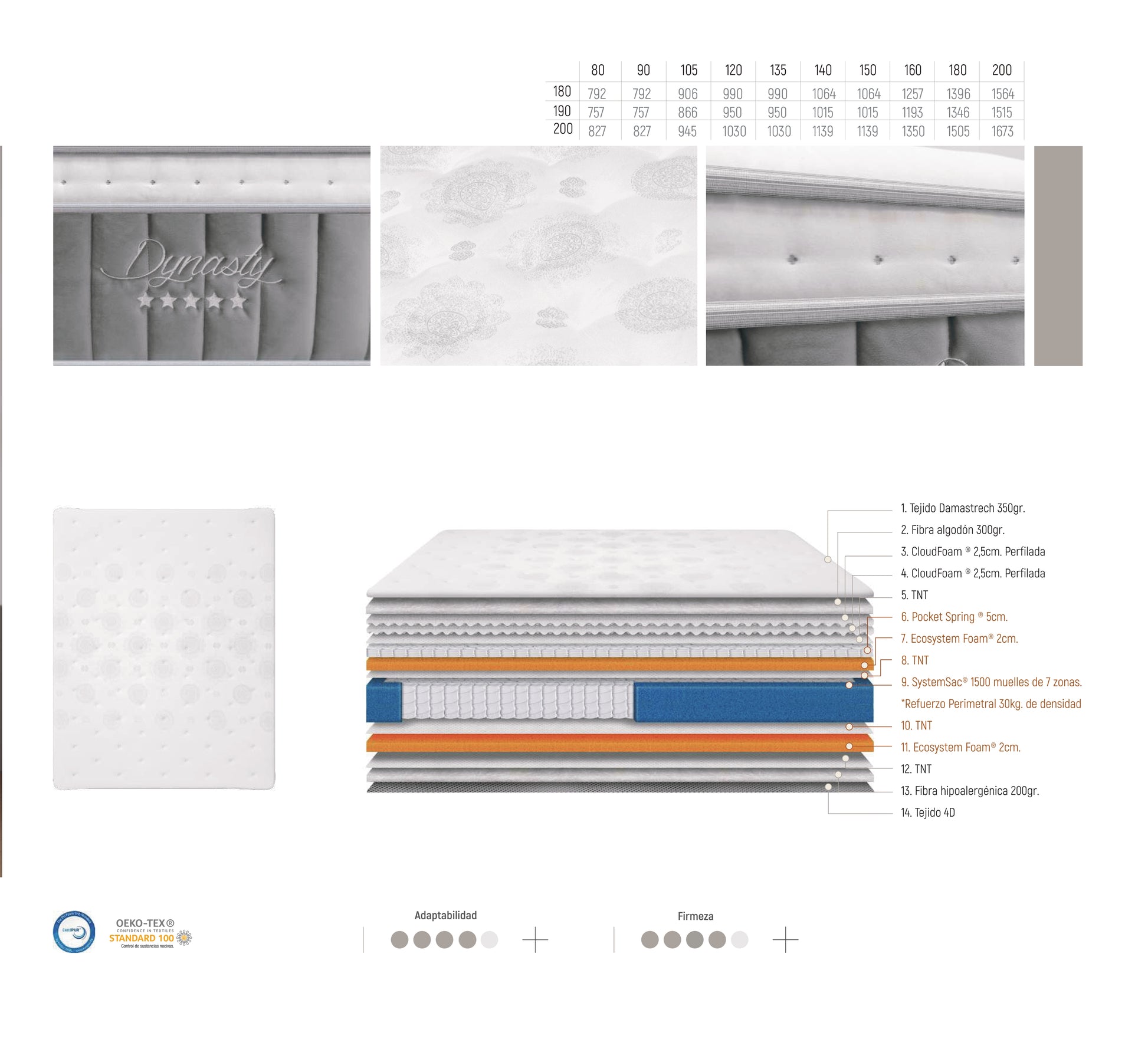 - Núcleo central: SystemSac® con 1500 muelles ensacados de 7 zonas + refuerzo perimetral de alta densidad (30 kg/m³)