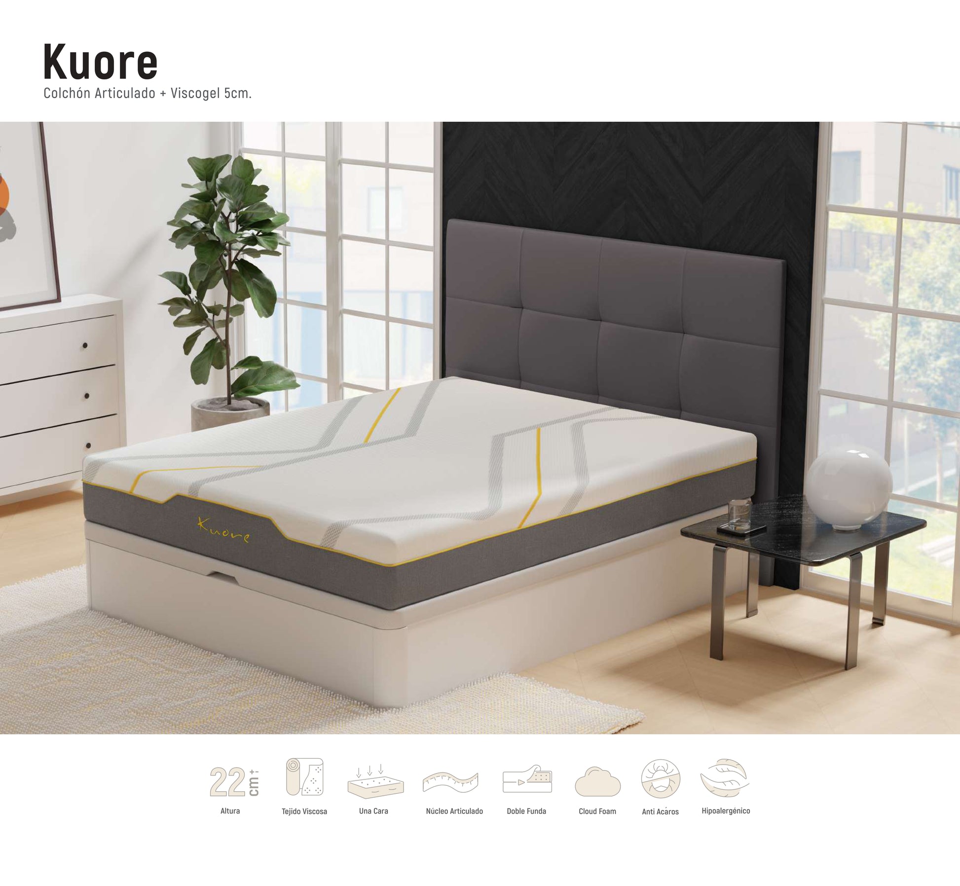 Kuore | Colchón Articulado + ViscoGel 5 cm | 22 cm – Firmeza Media | Una Cara