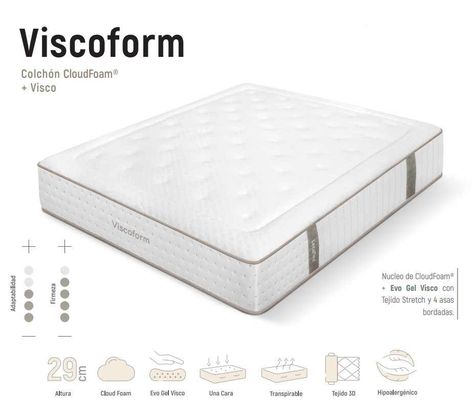 Colchón Viscoform | CloudFoam® + Evo Gel Visco | 29 cm – Firmeza Media-Alta | Una Cara