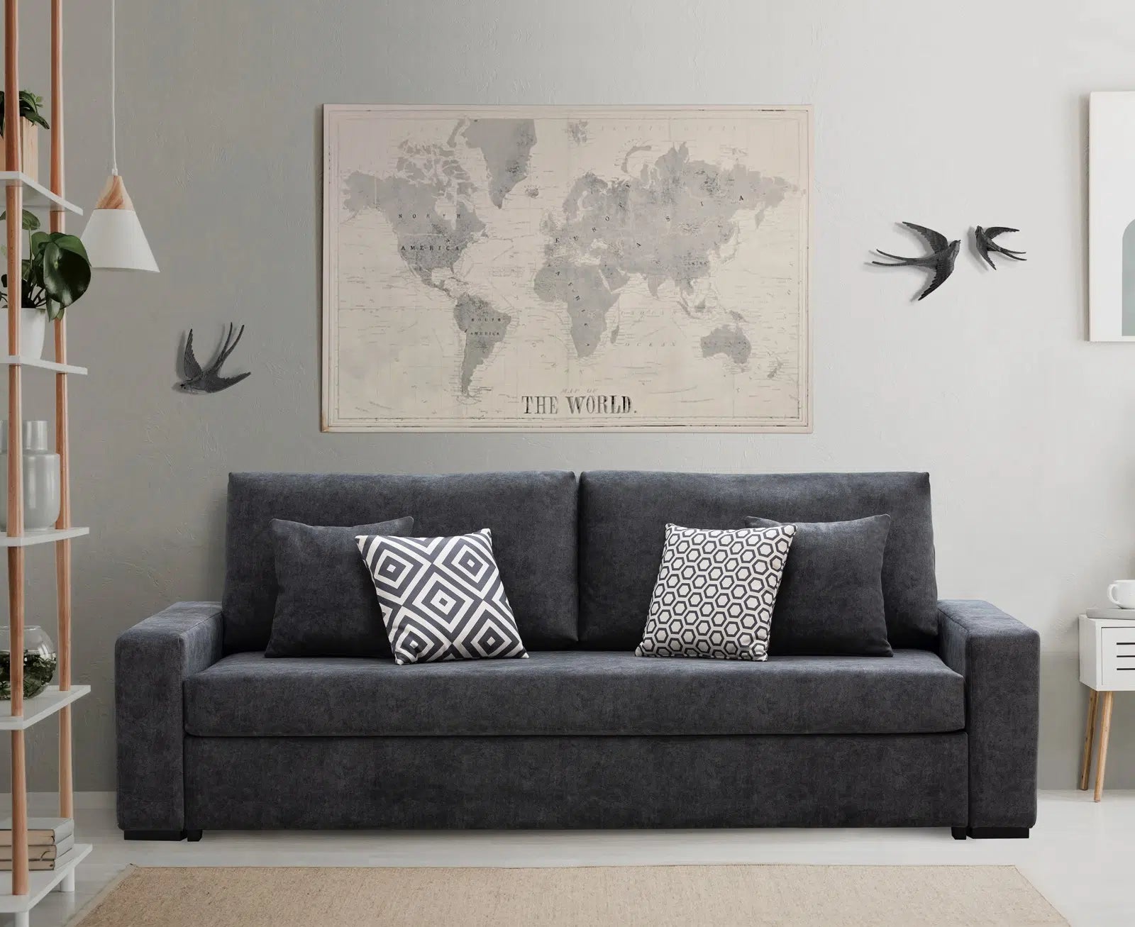 El Sofá Cama Blanca es la opción perfecta para quienes buscan un sofá amplio, elegante y práctico. Su estructura de madera de pino y tablero de partículas recubiertos de espuma de poliuretano aseguran solidez y durabilidad. Incorpora un mecanismo extensible con somier tubular y lamas de madera, que permite transformarlo fácilmente en cama. Incluye un colchón de espuma de 25 kg con funda elástica desenfundable y cama nido de serie, ofreciendo así una solución versátil y cómoda para invitados o uso diario.
